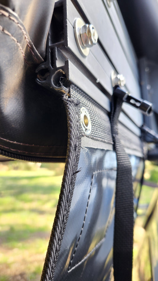 "Its an amazing all-in-one kitchen organiser and bin all rolled into one neat little package. Designed to make cooking at camp under your awning or hung up from your gazebo quick and easy! And honestly I don't go anywhere without it and I do mean anywhere! All designed and Hand made in WA its got Ripstop Canvas and is charcoal in colour as well as a PVC Reinforced Backing so it's not tearing anytime soon. All the basic kitchen necessities in one simple rollout canvas kitchen that is super easy to store and perfect for throwing in the car, caravan or camper at a moments notice, I don't go anywhere without mine!" - Shane Gossage